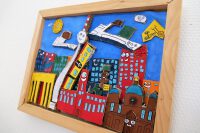 Unter Frau Coppolas Anleitung entstanden kleine dreidimensionale Kunstwerke. Inspiriert von James Rizzi haben Schülerinnen und Schüler der sechsten Klasse die Stadt Berlin durch des Künstlers Brille betrachtet.
